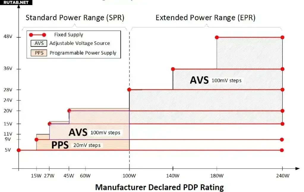 В PD3.2 AVS расширили на диапазон 9V-20V (SPR AVS), открыв путь для эффективной быстрой зарядки smartphones.