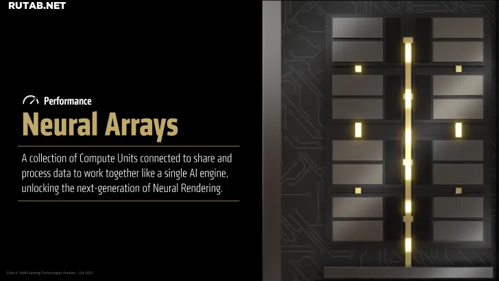 Neural Arrays — это архитектура, объединяющая несколько вычислительных блоков. Такая конструкция значительно повысит производительность нейронного рендеринга и обеспечит поддержку будущих технологий суперразрешения FSR и PSR. AMD и Sony ожидают, что Neural Arrays заметно улучшат качество изображения при суперразрешении и эффекты рендеринга сцен.