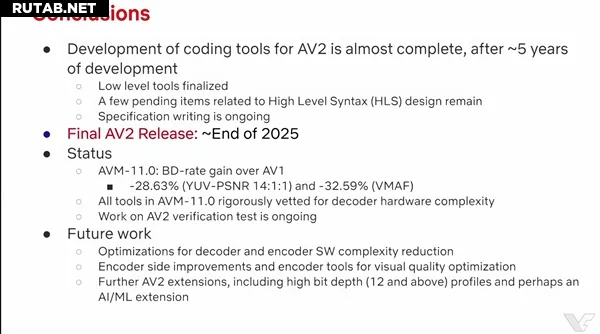 Консорциум AOM (Alliance for Open Media), в который входят Microsoft, Google, Intel, Netflix, Amazon и Cisco, активно работает над новым стандартом сжатия видео «AV2», официальный релиз которого ожидается к концу этого года.