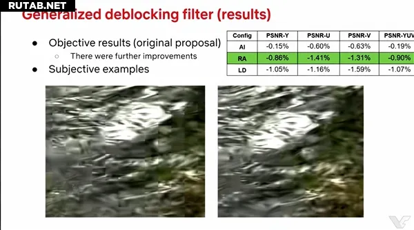 Также были модернизированы технологии фильтрации и постобработки — универсальный фильтр деблокирования лучше сохраняет детали, а новые фильтры, такие как Guided Detail Filter и Cross-Component Sample Offset, эффективнее устраняют шумы сжатия.