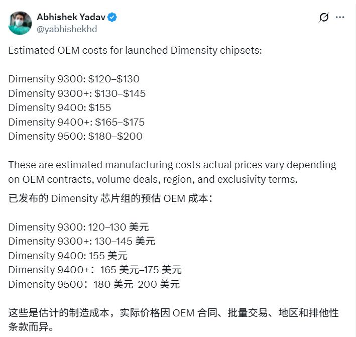 Разумеется, эти цифры представляют собой расчетную себестоимость производства. Фактические цены для производителей устройств могут варьироваться в зависимости от условий контрактов между MediaTek и партнерами, объемов закупок, региона и эксклюзивных соглашений.