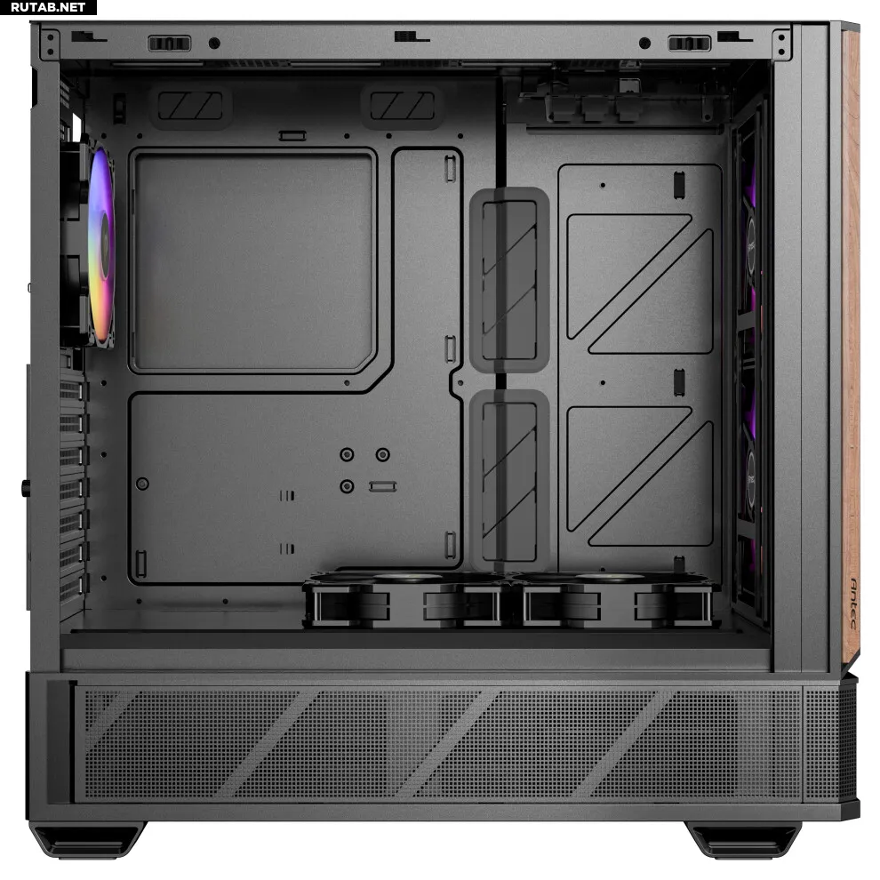 - Поддержка множественных конфигураций охлаждения: возможность установки вентиляторов или радиаторов спереди, сверху, сзади и снизу.