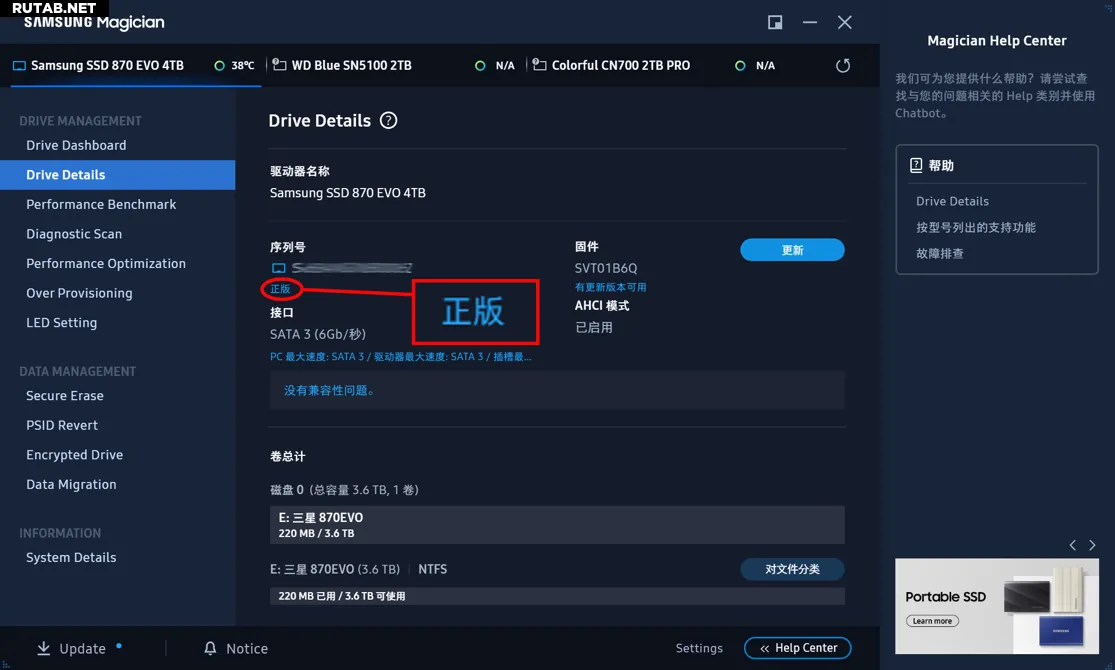 Надежный способ проверки - использование программного обеспечения SAMSUNG Magician, которое идентифицирует все устройства хранения данных Samsung и показывает пометку «Подлинный» для оригинальных продуктов.