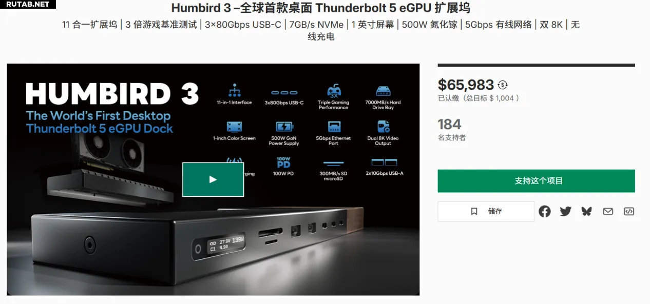 Компания Humbird запустила на краудфандинговой платформе Kickstarter устройство Humbird 3, которое позиционируется как «первый в мире» настольный док для внешних видеокарт с поддержкой стандарта Thunderbolt 5.