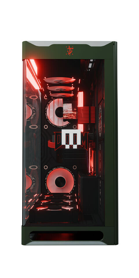 Особенностью новинки стала система жидкостного охлаждения TRYX PANORAMA SE 360 со встроенным LCD-экраном, на котором непрерывно демонстрируется геймплей оригинальной DOOM. Компьютеры оснащаются процессорами AMD Ryzen 9000 Series, видеокартами GeForce RTX 50-series и фирменными красными кабелями.