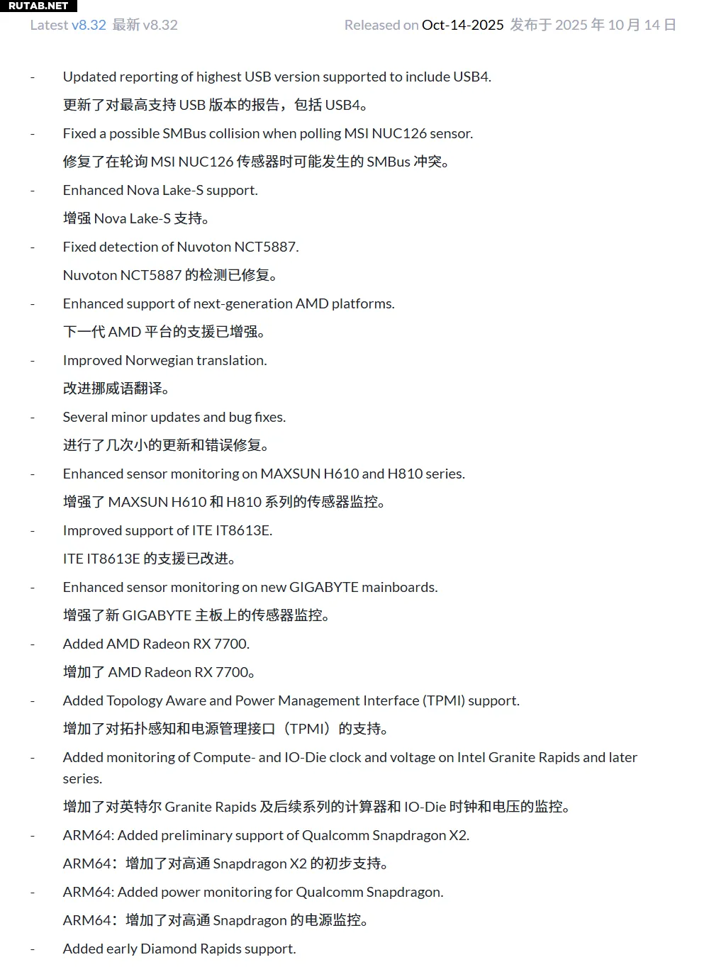 Предыдущая предрелизная версия HWiNFO 8.31 была единственным инструментом с поддержкой Nova Lake-S и платформ AMD «следующего поколения». С выходом официальной версии v8.32 разработчики подтвердили расширенную поддержку обеих платформ.
