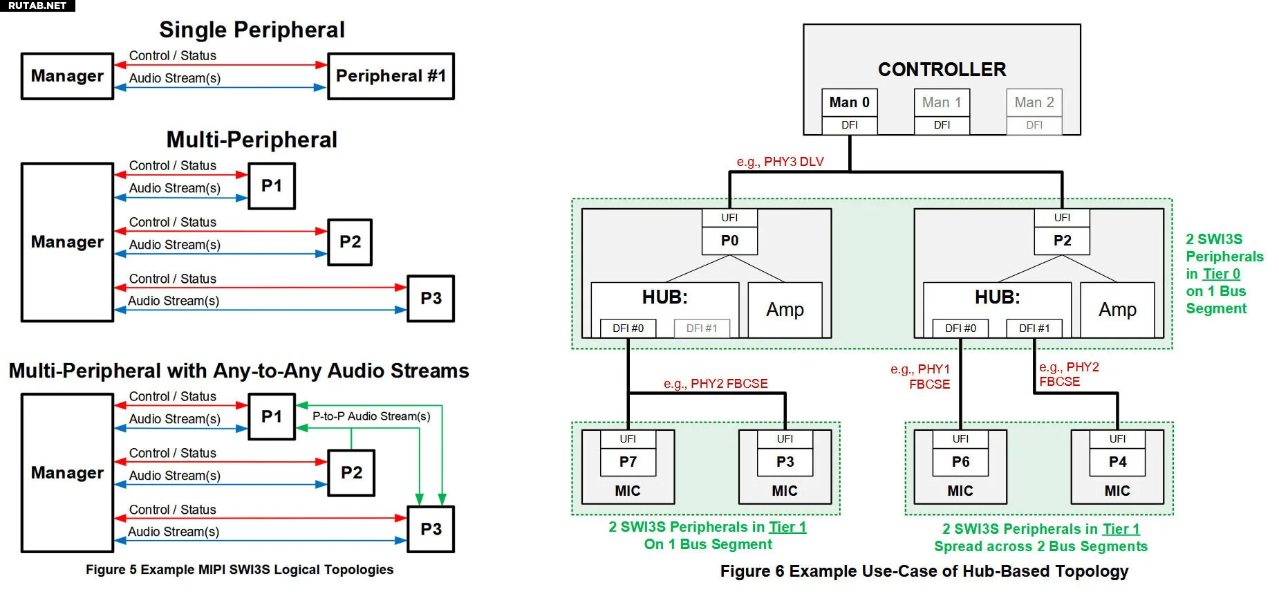 MIPI SWI3S v1.0 поддерживает скорость передачи данных до 76 Мбит/с по двухконтактному интерфейсу, работая в режимах «передаваемых тактовых импульсов» или «дифференциальной низковольтной сигнализации» для исключительной помехозащищенности, что позволяет уменьшить экранирование от EMI и улучшить электромагнитную совместимость (EMC). Система SWI3S может включать одну или несколько линий связи, каждая с одним управляющим устройством и до 12 периферийных устройств, включая микрофоны, усилители и другие, для поддержки множественных топологий. Кроме того, интерфейс поддерживает управление шиной, внутриполосную передачу команд и точные тактовые импульсы «аудио качества».