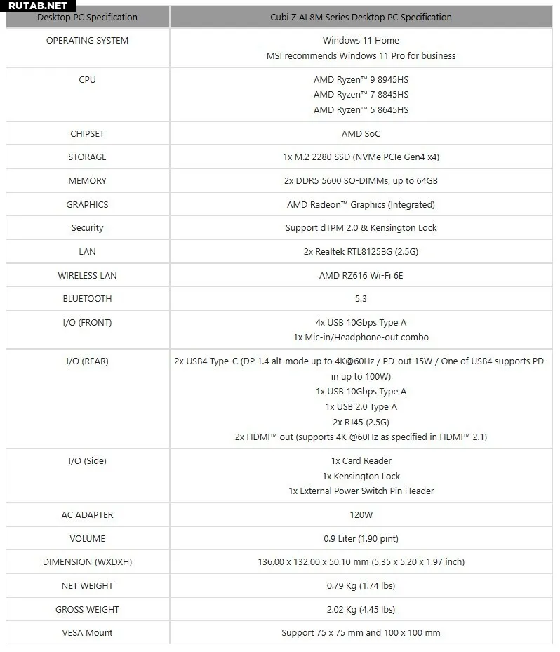 MSI представляет мини-ПК Cubi Z AI 8M с поддержкой ИИ
