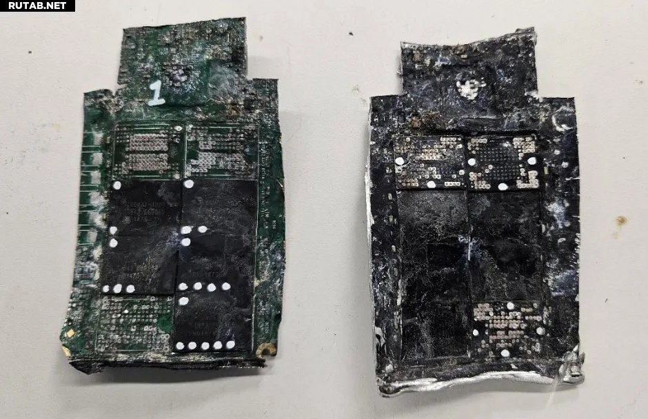 В конечном итоге крупная масса была передана в Лабораторию исследований пожаров (FRL) Бюро алкоголя, табака, огнестрельного оружия и взрывчатых веществ (ATF). В итоге ATF удалось извлечь две печатные платы, показанные ниже, которые, как полагают, принадлежали паре 2,5-дюймовых SSD-накопителей.