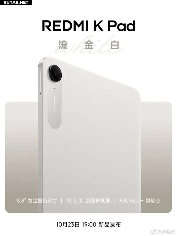 Президент Xiaomi Group Лу Вэйбин объявил, что планшет REDMI K Pad получит новый цвет «Струящееся золото» (流金白) и будет представлен 23 октября вместе со смартфоном REDMI K90.