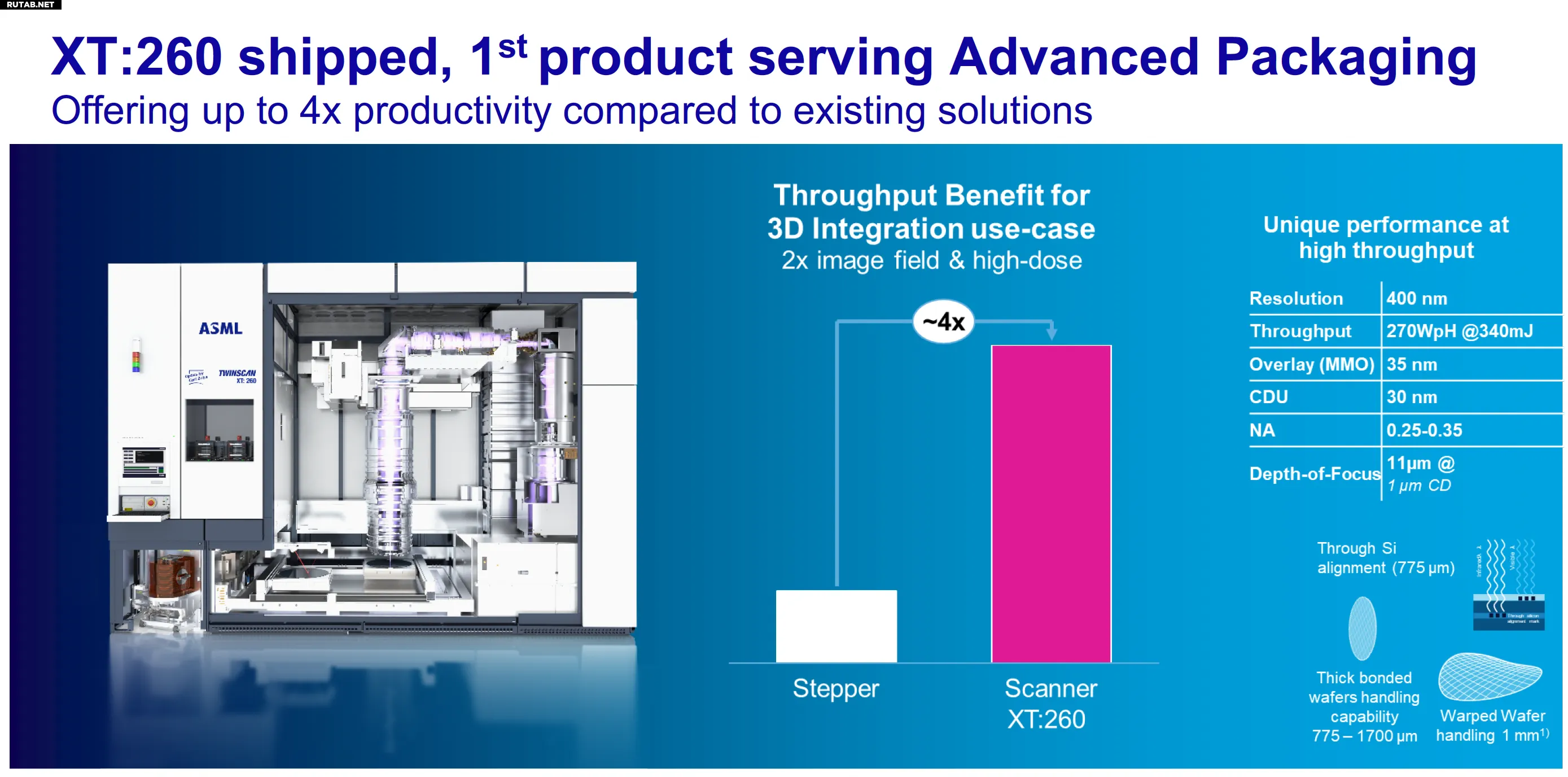 Twinscan XT:260 представляет собой значительный шаг вперёд по сравнению с существующими решениями, такими как stepper-системы Canon FPA-5520iV и PAS 5500 от ASML, которые широко используются для упаковки CoWoS.