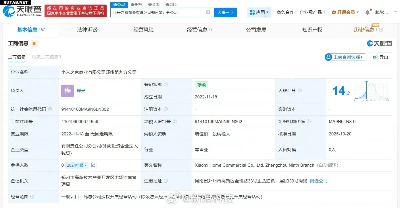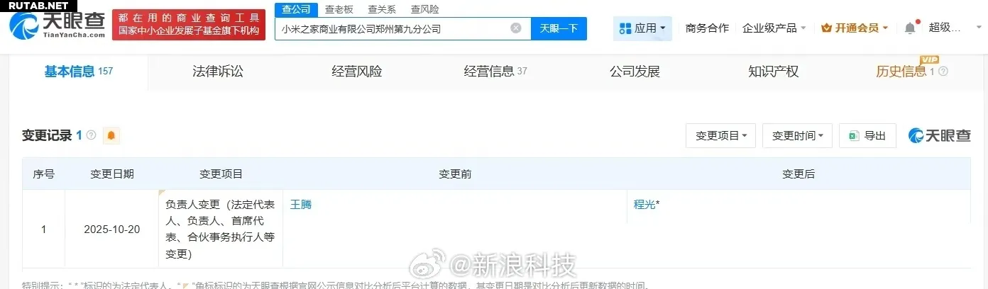 Согласно данным, компания Xiaomi Home Commerce Co., Ltd. Zhengzhou Ninth Branch провела изменения в руководстве: Ван Тэн покинул пост ответственного лица компании, его сменил Чэн Гуан.