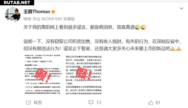 Ранее раскрытое письмо «Комитета по профессиональной этике группы Xiaomi» показало, что Ван Тэн был уволен за разглашение конфиденциальной информации компании и наличие конфликта интересов, что является серьезными нарушениями.