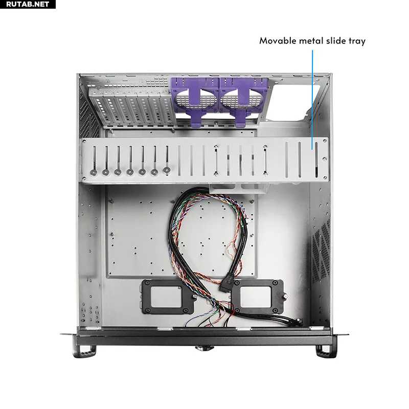 Корпус совместим с материнскими платами различных форматов, включая SSI-EEB, что позволяет создавать высокопроизводительные конфигурации. Также поддерживается установка стандартного блока питания ATX или мини-резервного БП, что гарантирует стабильное энергоснабжение и обеспечивает резервирование для критически важных операций.