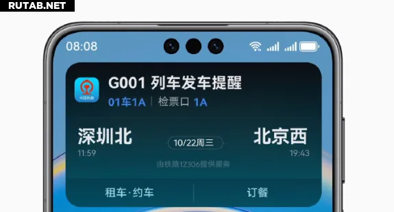 В HarmonyOS 6 значительно обновлено «живое окно» — теперь оно отображает больше информации, а с помощью карточек можно напрямую переходить к различным функциям внутри приложений. Например, в приложении 12306 «живое окно» может показывать информацию о поезде и месте, а также через карточки предоставлять прямой доступ к таким функциям, как заказ трансфера или еды.