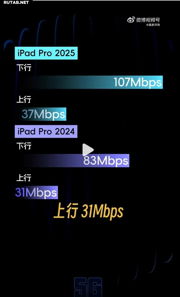 Стоит отметить, что версия iPad Pro M5 с поддержкой сотовой связи впервые оснащена собственным модемом Apple C1X. Измеренная скорость загрузки составила 107 Мбит/с, а скорость отдачи — 37 Мбит/с, что также является заметным улучшением по сравнению с M4.