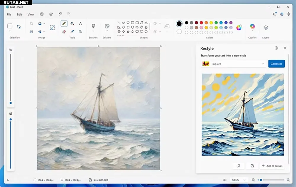 Microsoft добавила в Paint для Windows 11 функцию Restyle для изменения стиля изображений с помощью ИИ