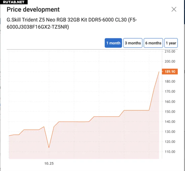 Что касается компьютерной памяти, то ведущие мировые производители DRAM, такие как Samsung, SK Hynix и Micron, уже планируют повышение цен на 30% — и это не «рекомендованные цены», а прямые увеличения для клиентов. Цены на модули DDR5 объемом 16 ГБ непрерывно растут, причем некоторые модели подорожали на 40% всего за месяц.