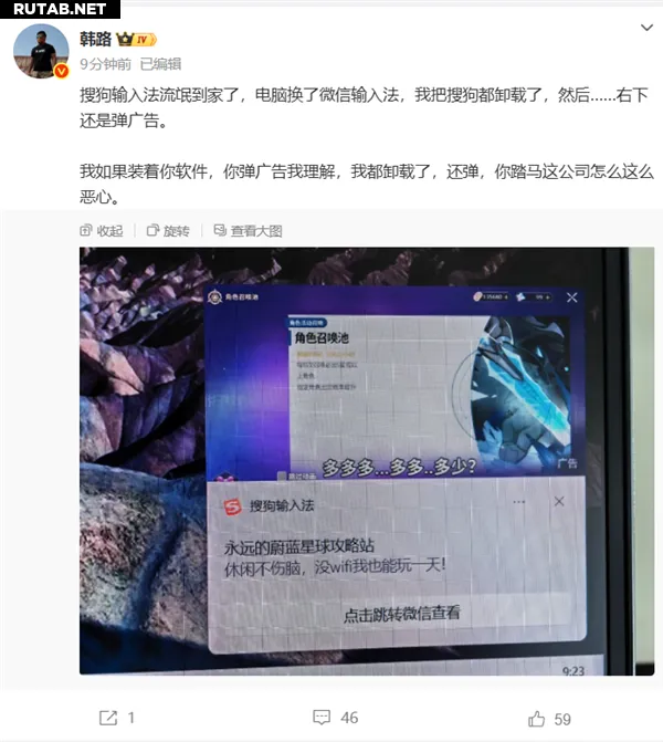 Сегодня известный автомобильный эксперт и главный редактор платформы «Лао Шицзи» Хань Лу в своем микроблоге раскритиковал работу популярного китайского приложения для ввода текста Sogou Input. Он назвал его «абсолютно наглым», поскольку программа продолжает показывать рекламу даже после удаления. Этот пост вызвал широкое обсуждение среди пользователей.