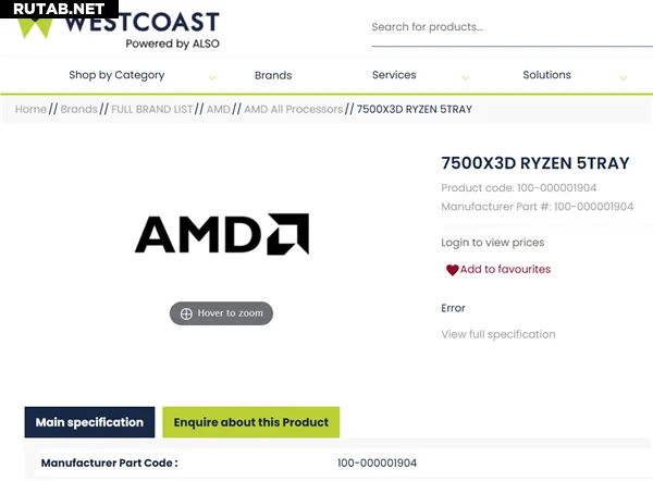AMD готовит бюджетный процессор Ryzen 5 7500X3D с 102 МБ кеш-памяти