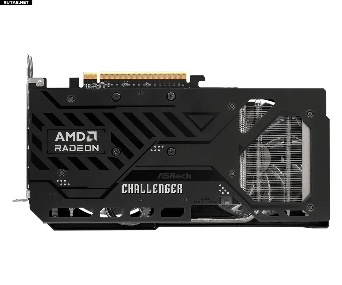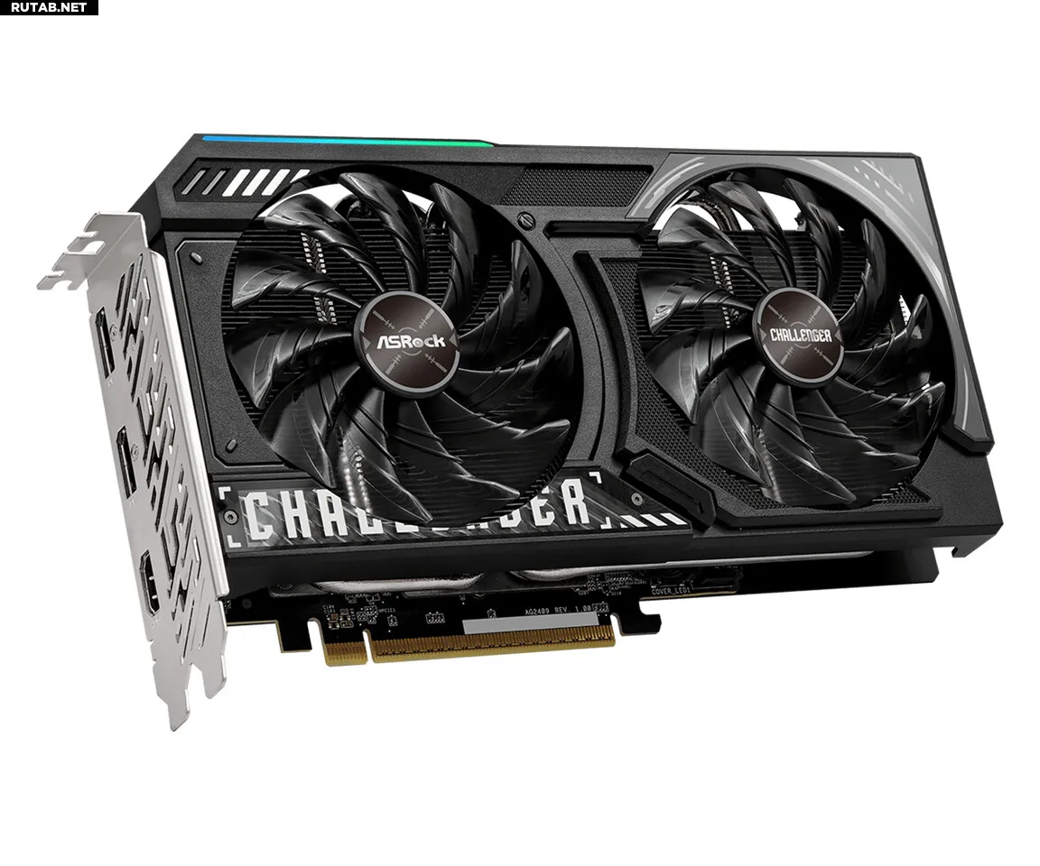 Конструкция платы ASRock RX 9060 XT 16 GB Challenger Standard Edition идентична модели Challenger OC — двухслотовое решение с двумя вентиляторами и алюминиевым радиатором. Карта питается через один 8-контактный разъем PCIe. Видеовыходы включают два DisplayPort 2.1a и один HDMI 2.1b.