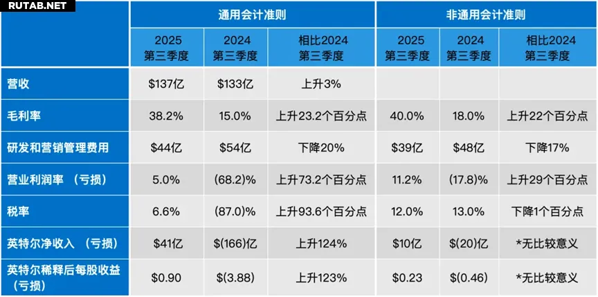 В третьем квартале 2025 года Intel получила общую выручку в 13,7 миллиарда долларов, что на 3% больше, чем годом ранее. Но главное достижение — компания смогла превратить убыток в 1,66 миллиарда долларов за аналогичный период прошлого года в чистую прибыль в 4,1 миллиарда долларов.