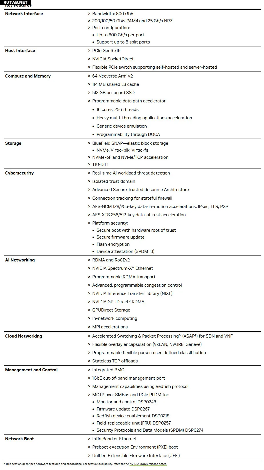 Новый процессор поддерживает многопользовательские сети, обеспечивает быстрый доступ к данным и безопасность во время выполнения ИИ-задач. В основе безопасности лежит архитектура BlueField Advanced Secure Trusted Resource, которая позволяет создавать изолированные вычислительные среды с нулевым доверием.
