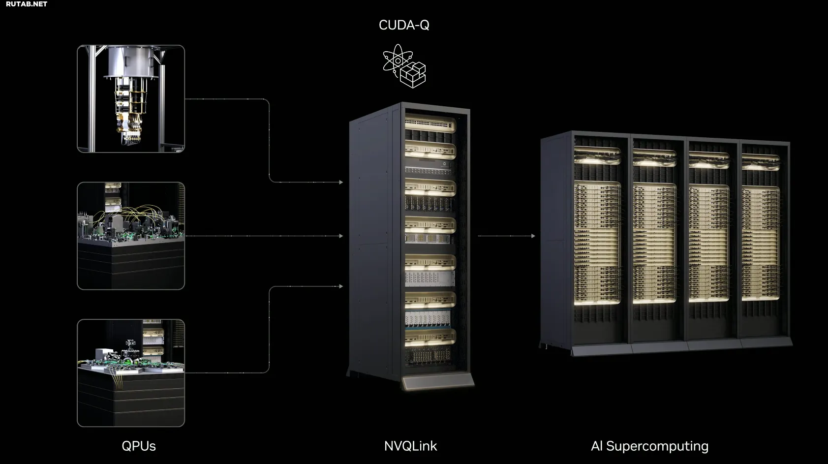 Хуанг заявляет, что это влечёт за собой перемещение терабайтов данных тысячи раз в секунду. Неизбежно, у Nvidia есть аппаратное решение для этого — новое квантово-оптимизированное соединение под брендом NVQLink, где «Q», предположительно, означает «quantum» (квантовый).