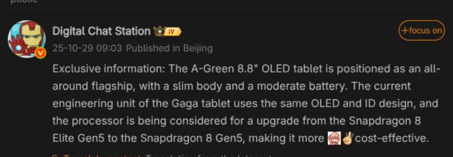 Возвращаясь к планшету, Digital Chat Station также отмечает, что он получит тонкий корпус и батарею умеренной ёмкости. К сожалению, инсайдер не поделился дополнительными деталями об устройстве или его возможном названии.