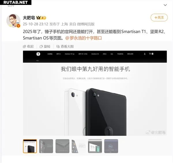 Блогер обнаружил, что официальный сайт компании Smartisan (锤子科技) до сих пор доступен, хотя бренд уже давно не выпускает смартфоны. При этом рекламный слоган её первого устройства, модели T1, был изменён на «Девятый по удобству смартфон в наших глазах».