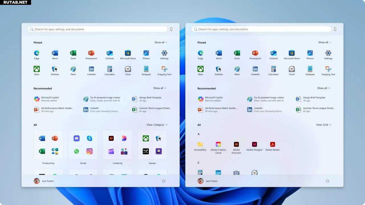 Кроме того, пользователи наконец-то могут отключить раздел «Рекомендуемые», освободив больше места для закреплённых программ и списка приложений. Также для списка всех приложений доступны три новых режима отображения: сетка, список и категории.