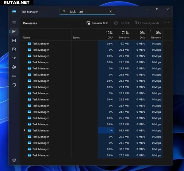 Проблема заключается в том, что после обычного закрытия окна «Диспетчера задач» программа на самом деле не завершает работу, а продолжает работать в фоновом режиме. При повторном открытии «Диспетчера задач» создается новый процесс. В ходе тестирования было зафиксировано до 100 таких фоновых процессов одновременно.