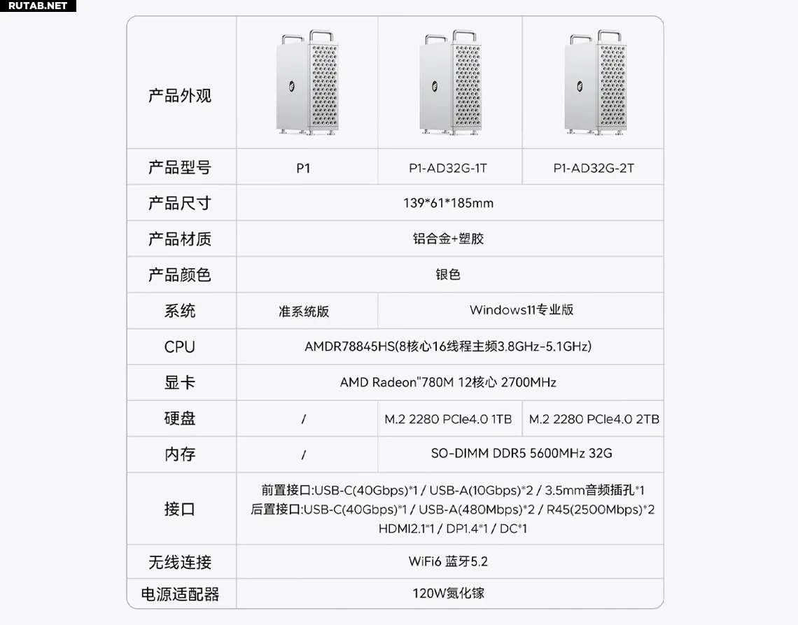 Также представлен Omini Pro, который поставляется с большим количеством опций. Базовая версия оснащена процессором AMD Ryzen 7 8845HS со встроенной графикой AMD Radeon 780M. Хотя устройство можно приобрести в виде «голой» системы (barebones), то есть без оперативной памяти и накопителя, оно также доступно в комплекте с 32 ГБ DDR5 SODIMM (с возможностью апгрейда до 256 ГБ) и на выбор с SSD на 1 ТБ или 2 ТБ. Кроме того, оно имеет два слота для накопителей с общей ёмкостью до 8 ТБ. Помимо более мощного «железа», вы получаете такое же количество портов, как и у предыдущей модели, что уже является щедрым набором. Omini Pro начинается с цены в 3099 юаней (~37200 рублей) за версию barebones, хотя на предзаказ она доступна всего за 2699 юаней (~32400 рублей).