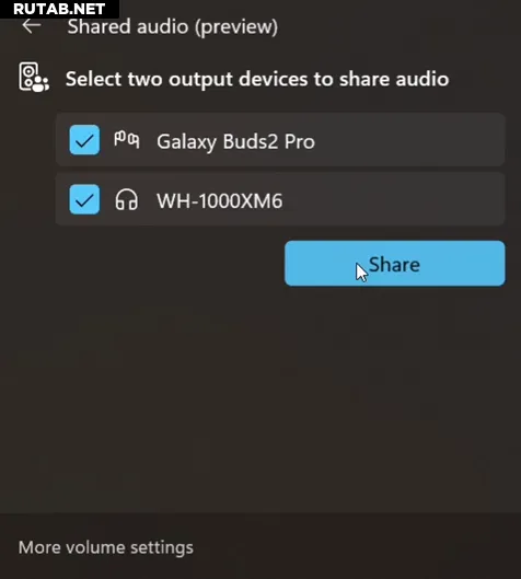 Владельцы совместимых Copilot+ PC с последней предварительной версией системы могут легко активировать функцию: достаточно подключить две пары наушников, затем в «Быстрых настройках» нажать на плитку «Поделиться звуком», выбрать устройства и нажать «Поделиться».