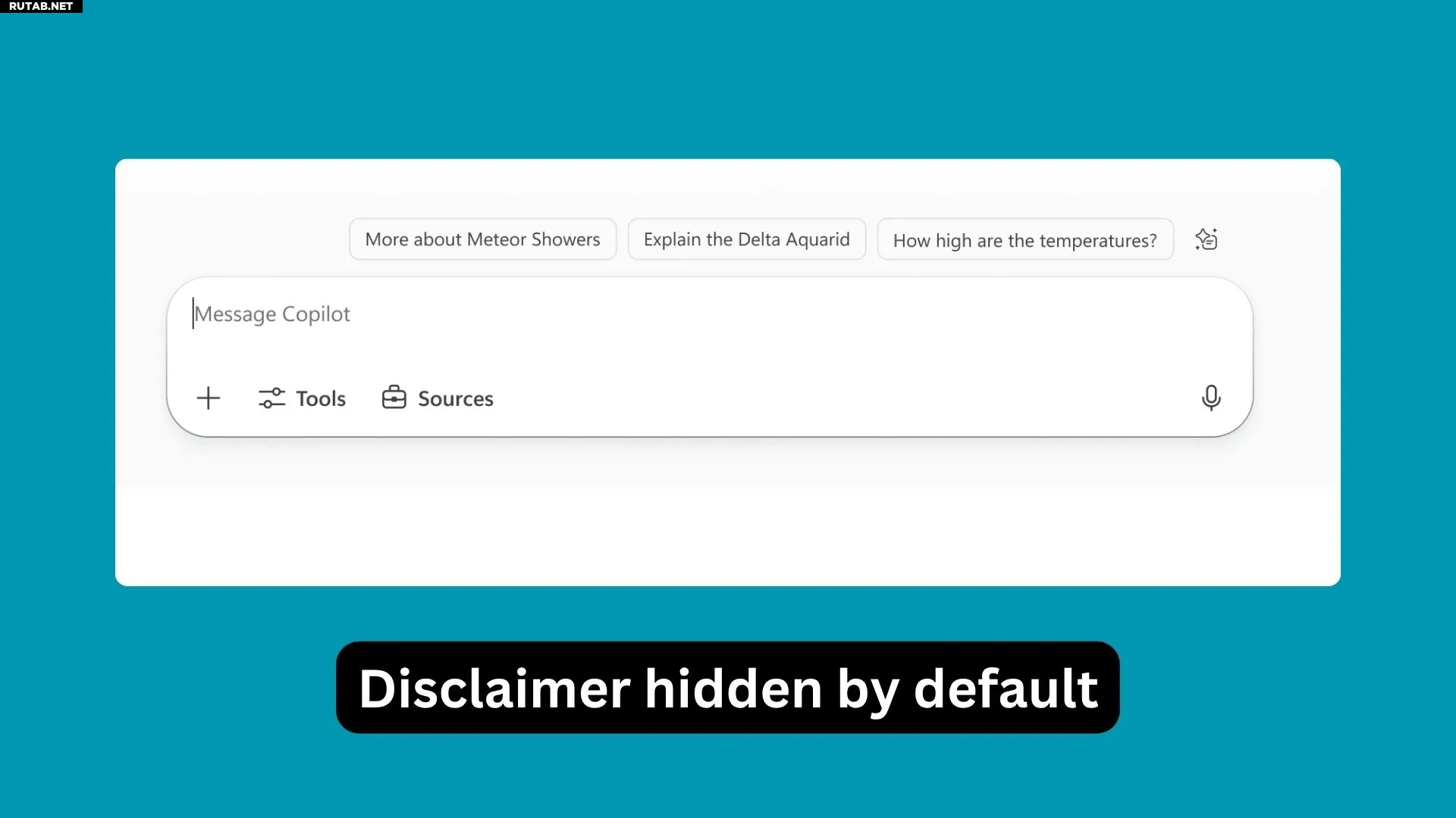 В справочном документе компания пояснила: «Мы обновили интерфейс заявления об отказе от ответственности ИИ в Microsoft Copilot Chat на основе отзывов клиентов. Некоторые пользователи сочли это заявление слишком отвлекающим, в то время как другие находили его слишком незаметным».
