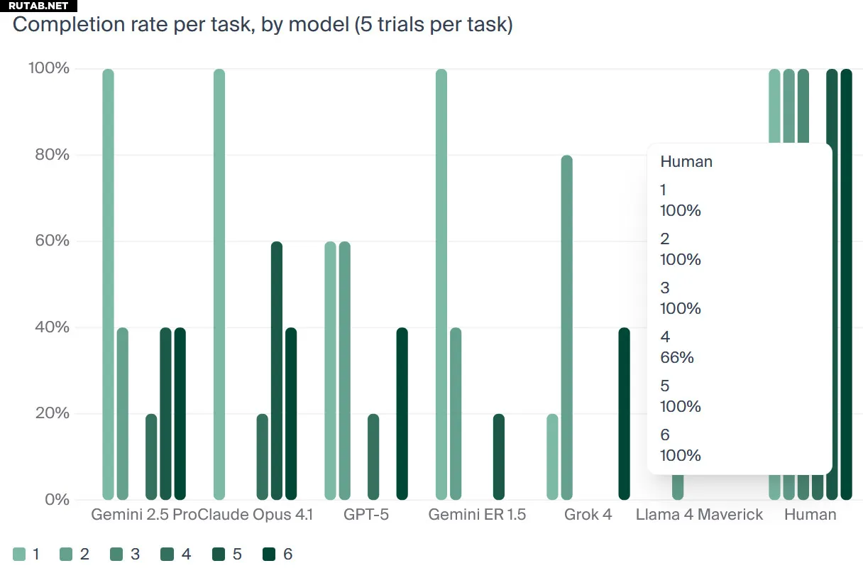 Исследователи пришли к выводу, что, хотя ИИ превосходят людей в аналитических задачах, в простых физических испытаниях, подобных «Butter Bench», человек пока остаётся эффективнее.