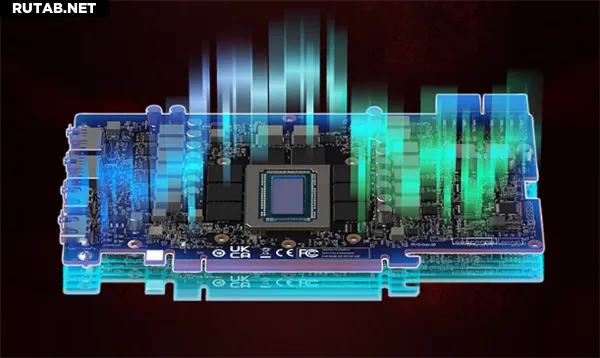 Кроме того, модель получила полноразмерную металлическую заднюю пластину, которая не только придаёт карте более премиальный вид и повышает жёсткость конструкции, но и помогает отводить тепло от графического процессора, улучшая общую эффективность системы охлаждения.