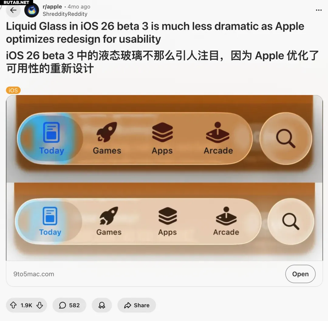 С момента выхода iOS 26 дизайн Liquid Glass менялся несколько раз. В первой бета-версии эффект был самым прозрачным, но после критики Apple усилила размытие в Центре управления и панелях навигации. Затем в следующих бета-версиях прозрачность снова увеличили, что снова вызвало неоднозначную реакцию.
