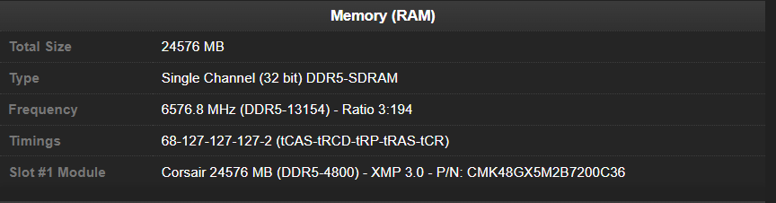 Saltycroissant использовал модуль Corsair Vengeance DDR5 объёмом 24 ГБ, материнскую плату GIGABYTE Z890 AORUS Tachyon ICE и процессор Intel Core Ultra 7 265K, чтобы выжать из памяти максимум возможного.