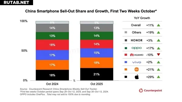 Модель iPhone 17 Pro также демонстрирует впечатляющие результаты — данные Counterpoint показывают, что ее рост продаж в октябре почти на две трети превысил показатели iPhone 16 Pro за аналогичный период прошлого года.