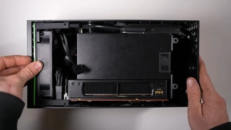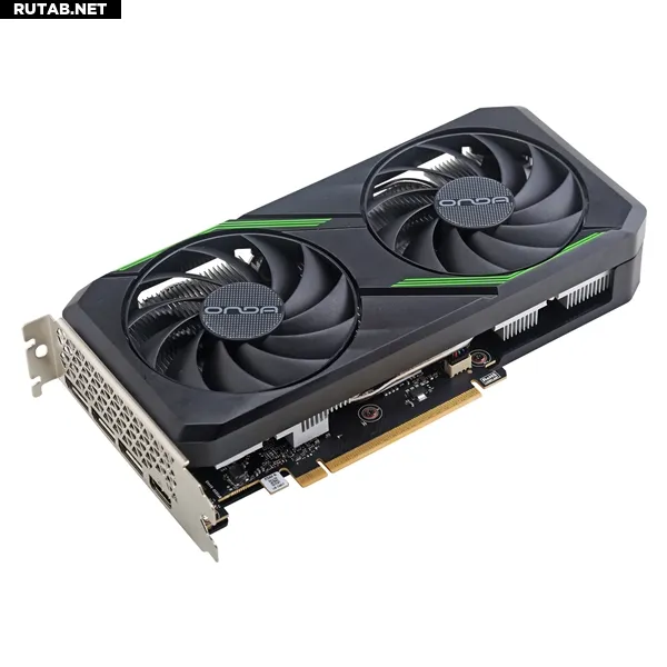 Новая видеокарта выполнена в компактном двухвентиляторном дизайне длиной 227 мм с чёрным корпусом и зелёными акцентами. Технические характеристики скромные: чип GB207, 2560 ядер CUDA, частота 2310–2570 МГц, 8 ГБ памяти GDDR6 с 128-битной шиной и разъёмы DisplayPort 2.1b и HDMI 2.1b.