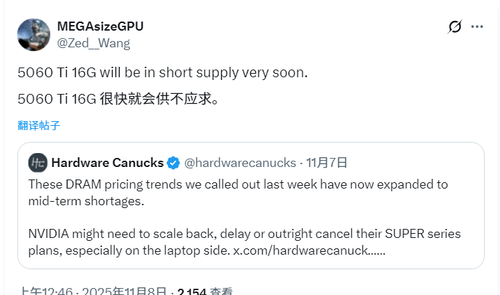 RTX 5060 Ti 16GB может столкнуться с дефицитом поставок и ростом цен