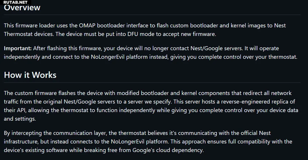 Кочиемба заявляет, что он «увлечен взломом оборудования, реверс-инжинирингом и борьбой с корпоративным контролем», так что этот проект кажется ему идеально подходящим. Репозиторий на GitHub, который стал активным на этой неделе, предоставляет все необходимые инструменты и прошивку для владельцев заброшенных термостатов Nest.