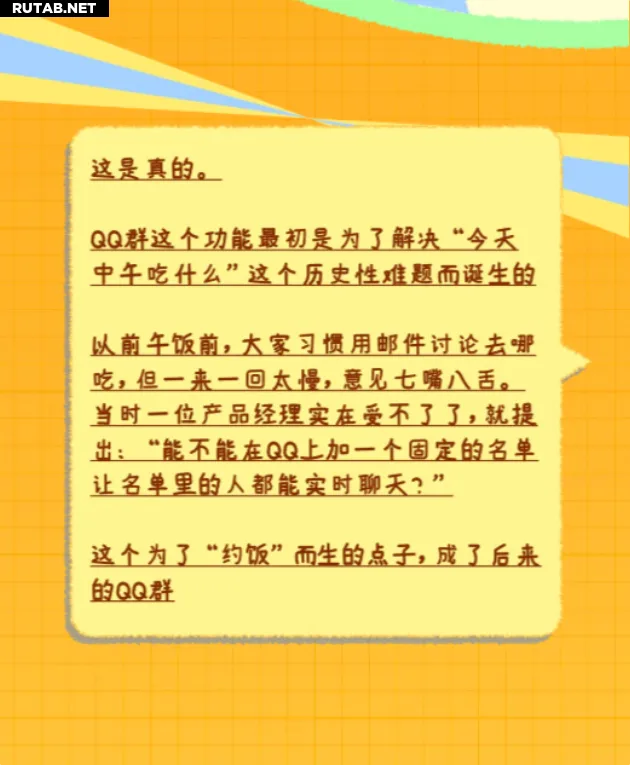 В компании пояснили: «Функция QQ-групп родилась из необходимости решить историческую проблему — „Что будем есть на обед?“».