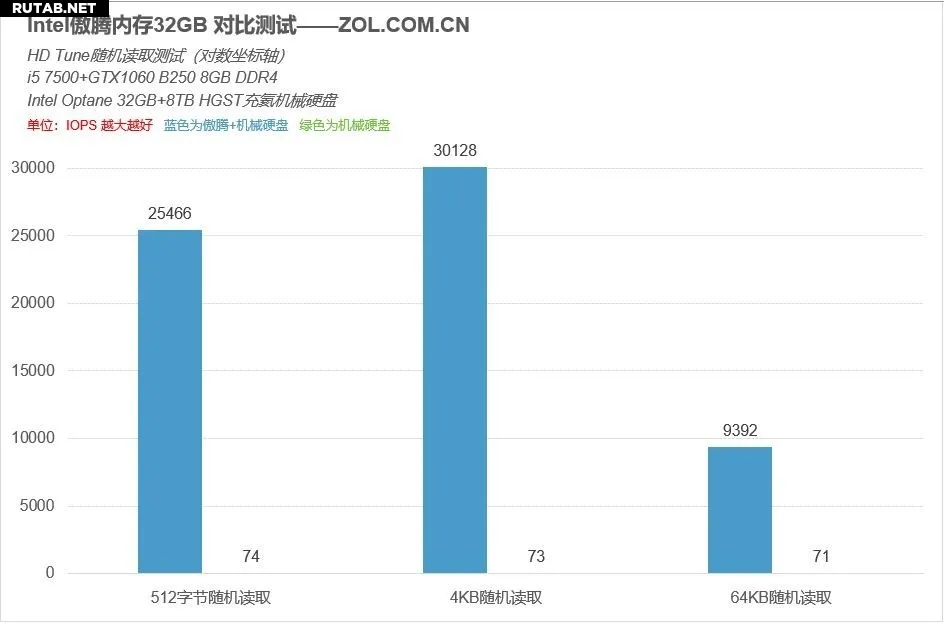 Во-вторых, производительность при случайном чтении. Результаты здесь ещё более впечатляющие. Обычный HDD показывает всего около 70 операций ввода-вывода в секунду (IOPS). С Optane этот показатель достигает 30 128 IOPS. Даже при случайном чтении блоков по 64 КБ результат достигает 9392 IOPS — это качественный скачок.