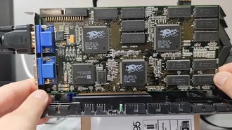 3dfx Voodoo 2 и Nvidia Riva TNT были вершиной ранней эры трёхмерной графики. Обе видеокарты вышли в 1998 году, и хотя у меня была вторая, Voodoo 2 была более производительной, несмотря на неудобство, связанное с необходимостью наличия отдельной 2D-видеокарты. Voodoo 2 — это легенда, и она регулярно встречается в ретро-ПК. Как выяснил ютубер-канал Bits und Bolts, конденсаторы на этих картах со временем могут и будут выходить из строя из-за редко обсуждаемого пироэлектрического эффекта.