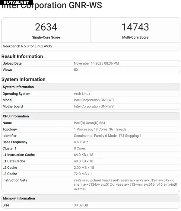 Поскольку каждый объем кэш-памяти соответствует нескольким конфигурациям ядер (максимум 12, 16, 32, 48 или 86 ядер), точное количество ядер для каждой модели пока неизвестно. Для модели Xeon 654 подтверждена конфигурация с 18 ядрами, максимальной частотой 4,8 ГГц и 72 МБ кэш-памяти L3.