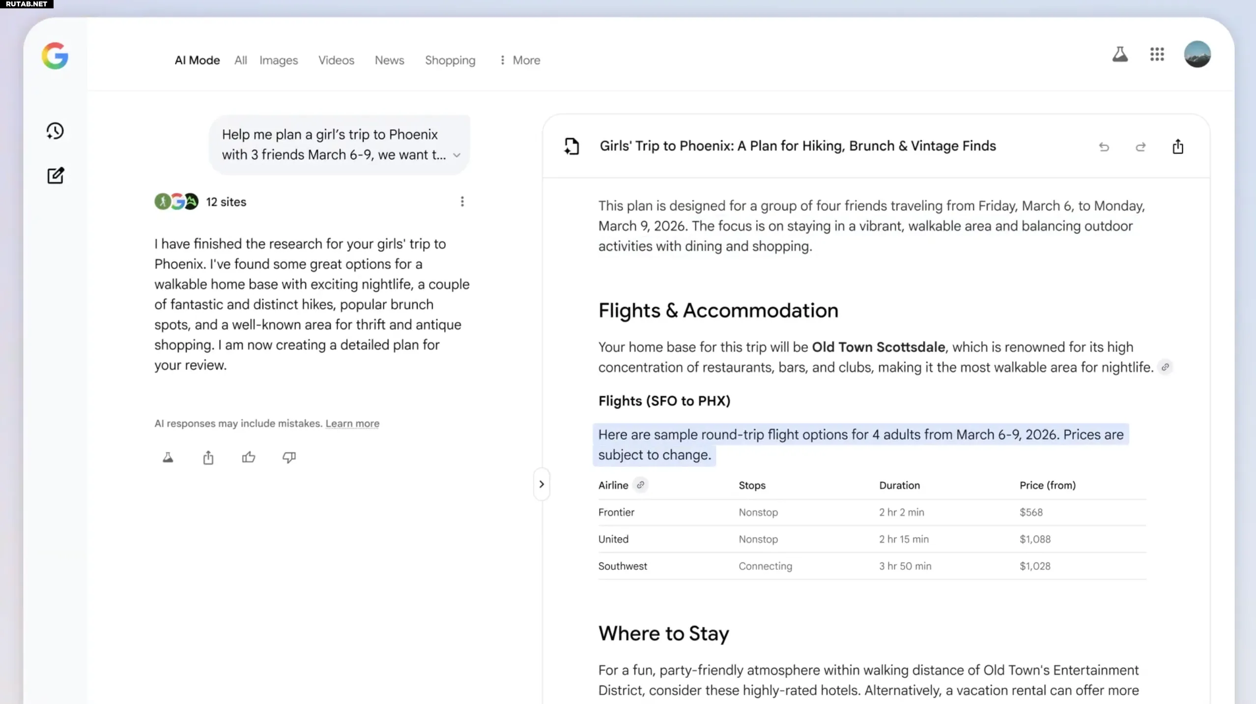 Что касается новых функций ИИ-режима, Google сообщает, что пользователи теперь могут использовать встроенный инструмент «Canvas» для создания планов путешествий. «Canvas», который изначально запускался как способ составления учебных планов и организации информации в боковой панели, теперь может помочь пользователям планировать предстоящие поездки.