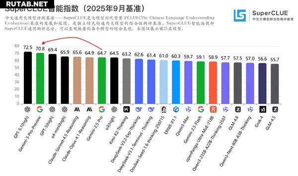 В конце 2025 года мировую сферу искусственного интеллекта ожидает очередная волна перемен. Согласно последнему отчету оценочного агентства SuperCLUE, предварительная версия Gemini-3 Pro от Google набрала общий балл 70,80 в сентябрьском китайском сравнительном тесте больших моделей SuperCLUE.