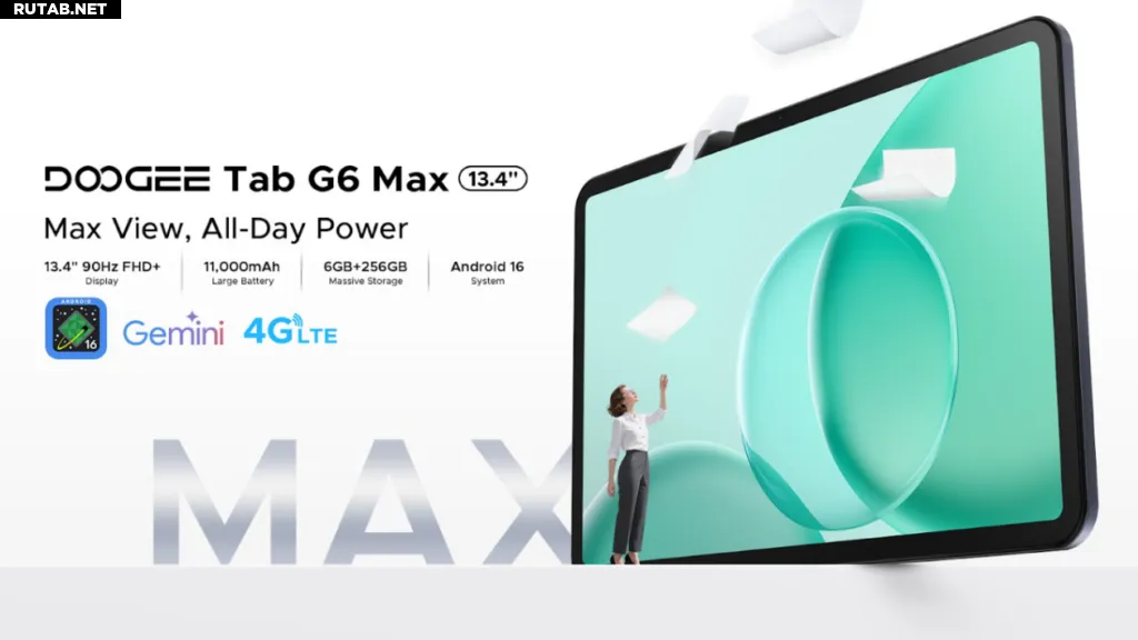 DOOGEE Tab G6 Max: планшет с 13,4-дюймовым экраном и аккумулятором 11000 мАч